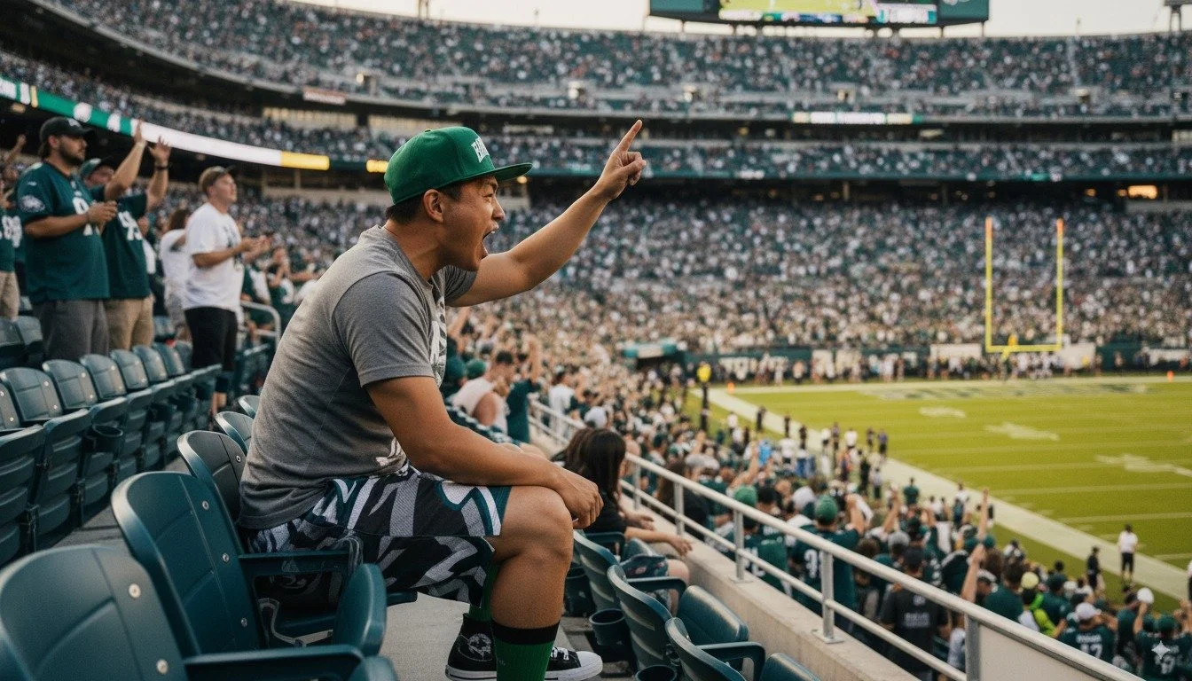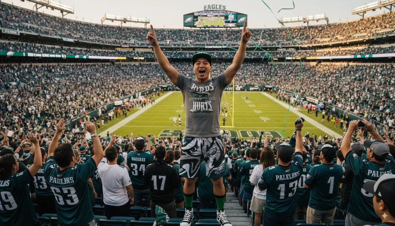 Excellent choice in clothing. Now let’s see him cheer on the Eagles: